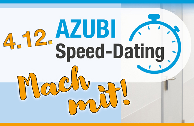 Das nächste Azubi-Speed-Dating findet am Donnerstag, 4. Dezember 2025 von 17 bis 19 Uhr statt - jetzt Time Slots aus 11 Berufsbereichen für die Wunschausbildung sichern!