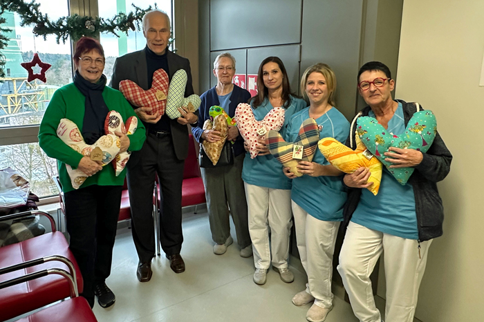Wunschgemäß wurden die in liebevoller Handarbeit hergestellten Kissen nachfolgend an Tumor-patientinnen und -patienten verteilt, die sich derzeit im Pirmasenser Krankenhaus für eine Behandlung befinden.