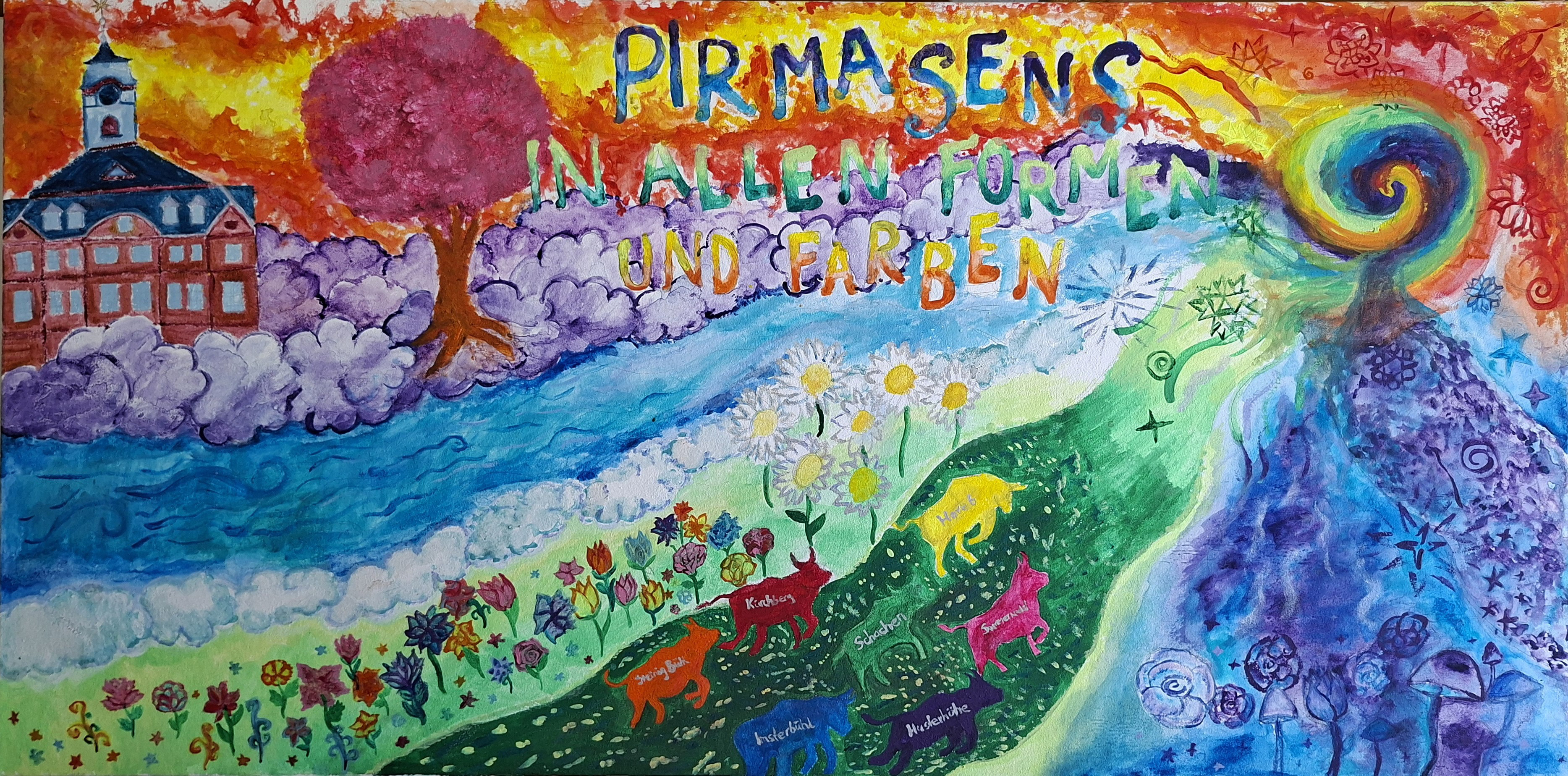 Pirmasens, 30. Januar 2026. Am 19. Februar 2026 startet im Städtischen Krankenhaus Pirmasens in der beliebten Reihe „Kunst im Krankenhaus“ die Ausstellung „Unser Pirmasens der Zukunft“. Gezeigt werden insgesamt 55 Bilder verschiedener Maltechniken sowie eine Skulptur. Diese sind das Ergebnis eines inklusiven Kreativprojekts, das von Mai bis Dezember 2025 in Kooperation mit dem Jugendhaus ONE Pirmasens der IB Südwest gGmbH und der GHG Pfalzblick im ASB GmbH durchgeführt wurde. Die Werke stammen von den teilnehmenden Kindern, Jugendlichen und jungen Erwachsenen, unter ihnen auch Menschen mit Behinderungen, sowie von Betreuungspersonen beider Einrichtungen. Das Thema der Ausstellung will einen direkten Bezug der Ausstellungsstücke zu den Wünschen und Zukunftsvisionen der Künstlerinnen und Künstler für ihre Heimatstadt schaffen.